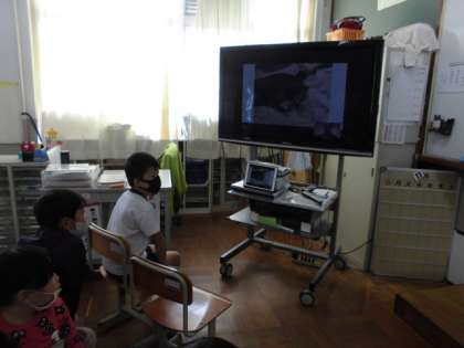 生活単元で「つながろう大作戦」という学習を進めてきました。いろいろな人や大好きな場所などとつながり,その中で京都市動物園と本日,zoomを使った交流をすることができました。事前に質問したことや,新しく聞きたいことなどを考えました。いざ画面に動物園の方が映ると少し緊張した様子のみんなでしたが,自分の質問をしっかり伝え,写真や動画を交えながら丁寧に教えてくださいました。校外学習に出かけられない中,こんないい機会を設定できたこと,とても嬉しかったです!