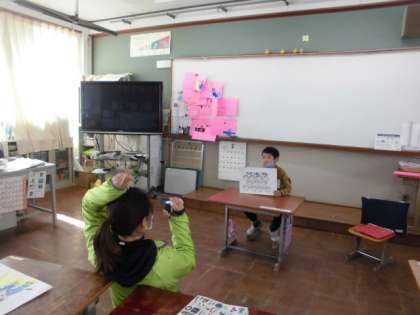 卒業する6年生に向けて,ビデオメッセージの撮影をしました。「6年生は喜んでくれるかな?」「喜んでくれたらいいね」と言いながら準備を進めてきました。本番を楽しみにしている子ども達です。