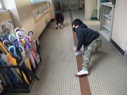 雑巾で拭いている2年生の姿がありました。