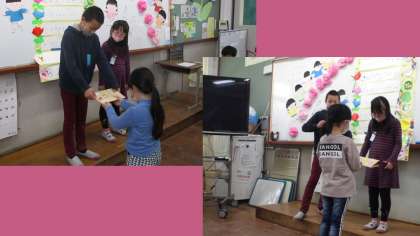 12日(金)5組の6年生2人の卒業をお祝いする会を行いました。