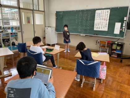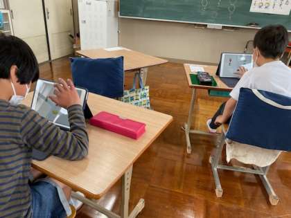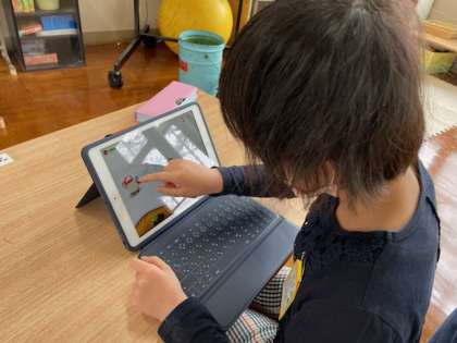 一人一台のipadが届き,さっそくどんなことができるかやってみました。楽しみながら学習できるアプリが入っていて,「こうかな?」「わ!うごいた!」と上手に指を動かしながら進めていました。これから授業の中にもうまく取り入れ,活用していきたいです。