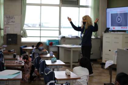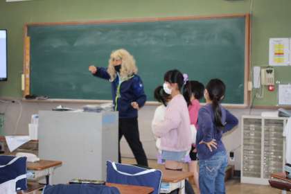 子ども達が楽しみにしていた外国語活動の時間です。いろいろな国のあいさつを知る学習をおこないました。担任によく似たALT(?)の先生に教わりながら,楽しく活動できました。