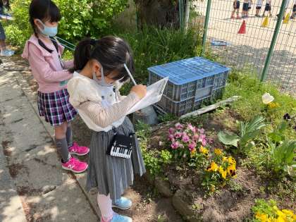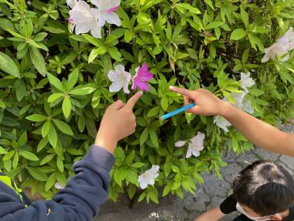 理科では「しぜんのかんさつ」の学習をしています。生き物はそれぞれ形や色に違いがあるかを調べるため,見つけた植物をスケッチして特徴をメモしました。今日は,タブレットPCでスケッチを共有し,生き物の姿はそれぞれ違うことを見つけました。