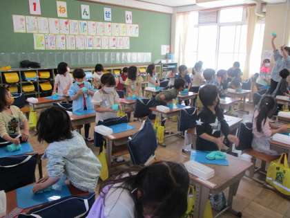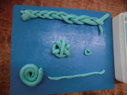 今日は粘土でひもを作っていろいろな形に変身させました。魚,恐竜,遊園地,パンなどいろいろなものがうまれました!とても楽しくて時間があっという間にすぎました。