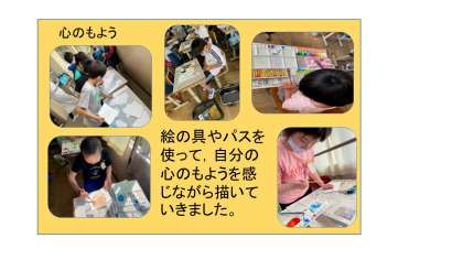 図工の時間に,『心のもよう』を表現する学習をしました。色や道具も好きなものを選び,白い画用紙に思い思いの心を表現していきました。「次は青」「ここは黄色にする」など,どんどん紙に色を塗り,あっという間に時間が過ぎていきました。次回は色画用紙にその模様を貼っていきます。どんな作品になるか完成が楽しみですね。