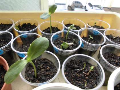 理科「植物の育ち方」の学習では,オクラ・ホウセンカ・ヒマワリ・ダイズのたねを観察して,一人一つの植物のたねまきをしました。