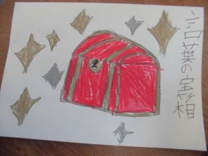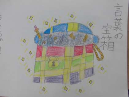 スキルタイムなどの時間に,国語辞典を使って,言葉の意味を調べたり,調べた言葉で文を考えたりしていきます。1年間使う台紙に,とても心をこめて,たから箱の絵を描いていました。