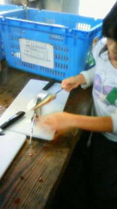生きた魚との格闘…