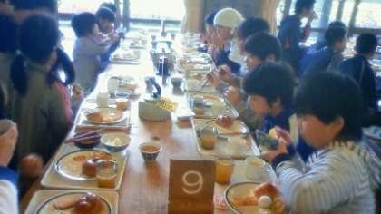 みんなバイキングカウンターで思い思いにおかずを取ります。
