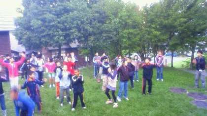 目覚ましにみんなで踊ったり,ゲームをしました♪