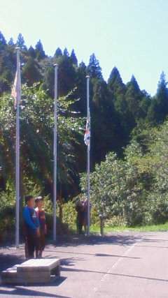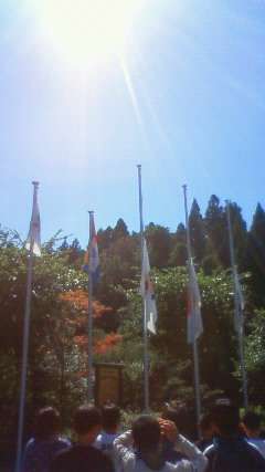 校歌を歌いながら学年旗を降ろしました。