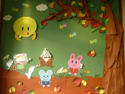 壁面は,秋らしくお月さまの掲示ですてきです。