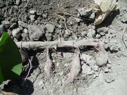 まだ土の中のさつまいもは小さいですが,10〜11月頃には収穫ができるようです。