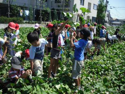 6月に植えたさつまいも。夏休みが明けて,みんなで観察に行きました。