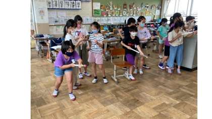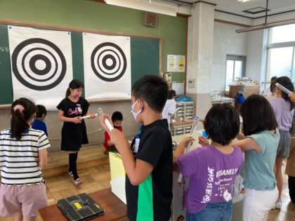 みんなと 空気でっぽうを楽しみながら