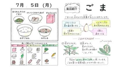 ☆給食の時間には,「ごま」のことを学びました。ごまのでき方や栄養を知って,ごまも残さずに食べることの大切さに気づきました。