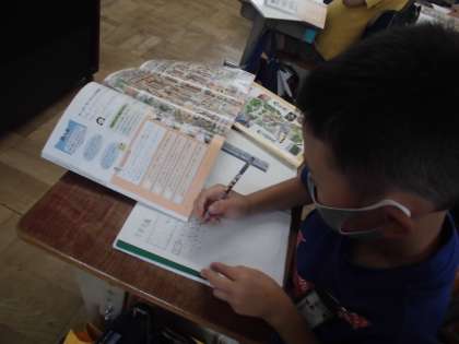 社会「商店のはたらき」の学習のはじめに,お家での買い物調べをしました。(ご協力いただき,ありがとうございました。)買い物調べの結果をグラフに表すと…スーパーマーケットで買い物をしている人が多い!ということに気付きました。そこで,スーパーマーケットのひみつを探ることにしました。まずは店内図のイラストを見ながら調査です!「その場で調理して新せんなものを売っている!」「レジの前にも商品が並べてある!」「レジの近くにお米など重たいものをおいている!」など,スーパーマーケットの工夫をたくさん見つけ,交流することができました。