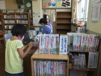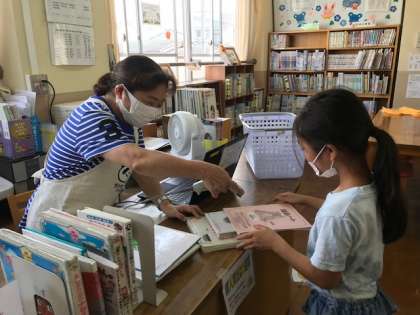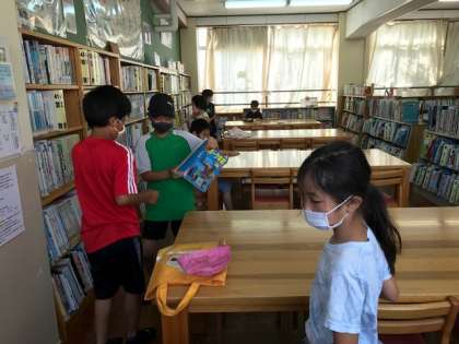 7月の図書館開館日の様子です。多い日で,20〜30人ほどが来ていました。図書館や本屋さんに行くと,たくさんの本が置いてあってワクワクしますね!その時の自分の気持ちや目的に合った本が見つかるとうれしいですね。次の図書館開館日は,8月18日・19日・20日の3日間,8:30〜8:50です。よければ来てください☆