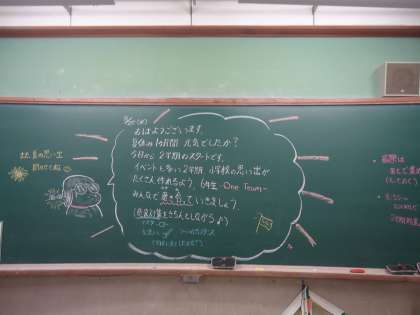 明日から2学期が始まります。行事の多い2学期,思い出もたくさん作れる2学期です。どんな2学期になるか,先生達も少しドキドキしながら楽しみにしています。77人,ONE TEAMでがんばっていきましょうね!