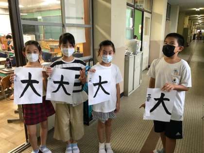 習字では,はらいの筆使いに気をつけて,『大』の字を書きました。