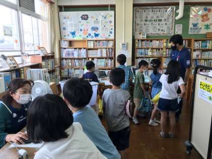 1クラスごとに,やすみじかんのとしょかんのかいかんをはじめています。