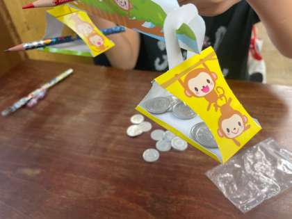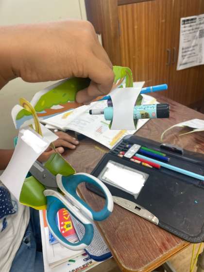 今日は算数の学習で,身の回りの文房具の重さを比べてみました。はじめは手に持って重さを比べ「こっちの方が重い気がするなー。」「えんぴつは長い方が重たいやろー。」と予想を立てながら比べていました。途中からはてんびんを使い,さっき手で比べた重い軽いが本当かを調べてみました。そのあとは1枚1グラムの1円玉と重さを比べ,ものの重さには単位があることを知りました。