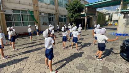 国語科で学習した「ちいちゃんのかげおくり」。昨日は実際にかげおくりをしてみました。子どもたちは物語の中のセリフを話しながらかげおくりをしていました。ポーズを変えてみたりと何度かやってみることができました。
