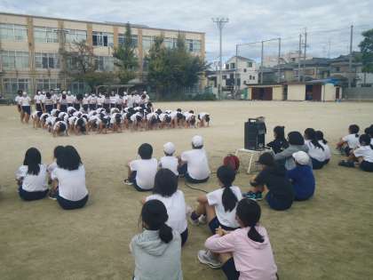 5年生からは「団結力を感じた」「6年生みたいになりたい」と,みんながこれまで演技に込めてきた思いが伝わったような感想を言ってもらいました。いよいよ明日は本番。晴れますように!みんなのこれまでの思いを出し切る演技,最高年の「ONE TEAM」な姿が楽しみです!