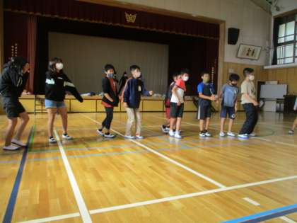 キャンプファイヤーの練習をしました。本番はみんなでたくさん盛り上がりましょう。