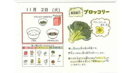 ☆久しぶりの「ブロッコリー」が登場しました。ブロッコリーは,寒い時期においしいことや,「花」の部分を食べていることを学びながら食べました。