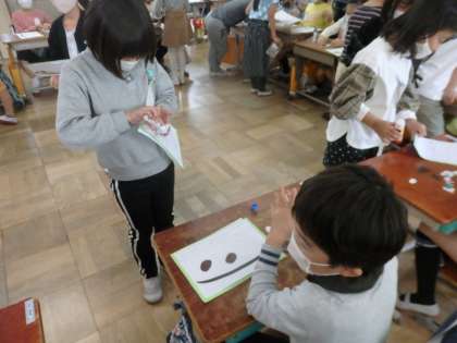 英語を話して,野菜カードのやり取りを行いました。