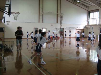 今日はとっても蒸し暑い日でしたが,暑い体育館で頑張って練習していました。