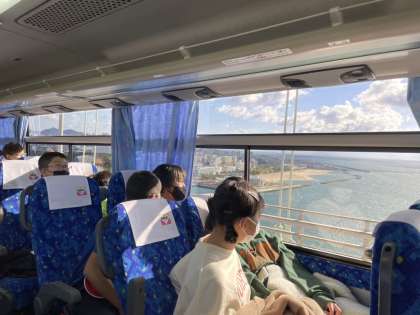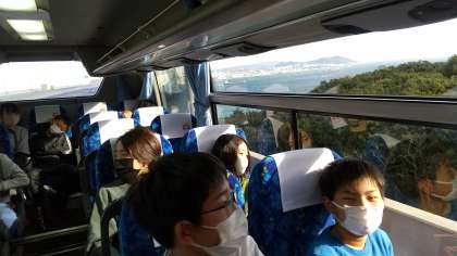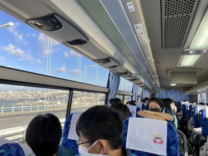 バスの中から海が見えた瞬間、「わぁー」という歓声が上がりました。もうすぐ1回目の休憩、淡路SA到着です。