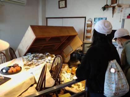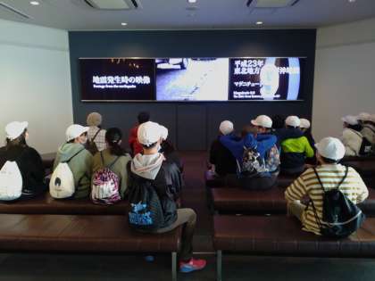 子どもたちは、実際に家が傾き、部屋がめちゃくちゃになってしまった様子を見たり、地震体験をしたり、実際の映像を見ることで地震の怖さや本当に起こった事実を改めて感じていました。