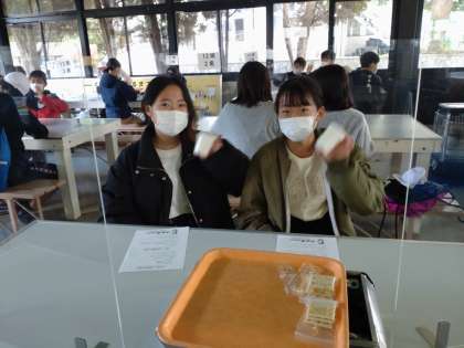 生クリームと牛乳が入った容器を上下に振りまくりました。みんな、手が痛いと言いながらも頑張って振り続けました。