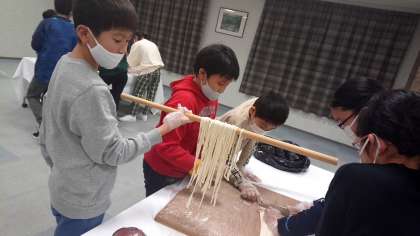 切ったうどんは,こんな感じです。上手に切れていますね。ゆでるとどんな味になるのか,楽しみです。