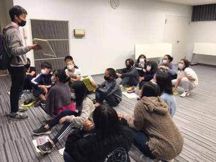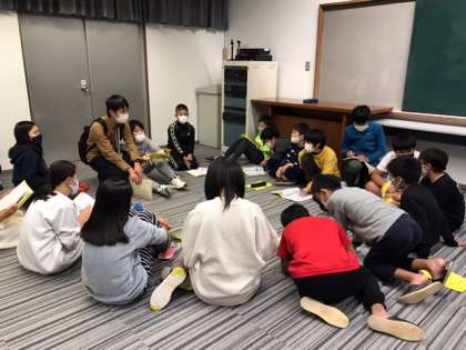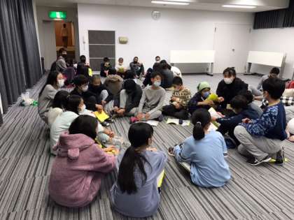 お風呂が終わって各係に分かれて大広間で振り返りをしました。