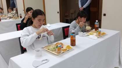 おはようございます。ぐっすり眠れたようです。朝から元気な子どもたち。朝ごはんをおいしくいただいています。今日はこの後,倉敷美観地区でお買い物。そして姫路セントラルパークです。今日も素敵な時間を過ごしましょう。