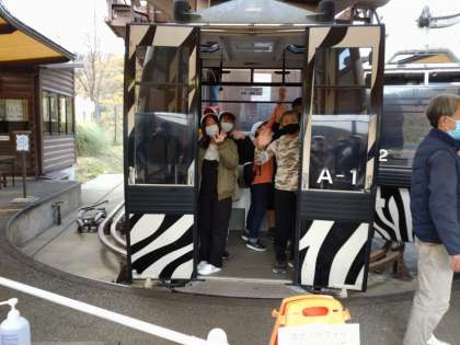 8人でゼブラ柄のゴンドラにのってバスの待つ駐車場へ。