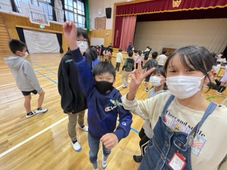 体育館や教室に分かれてそれぞれのグループで遊びました。
