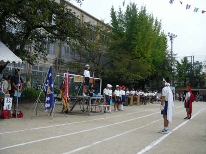 応援団長による選手宣誓です。大変しっかり堂々と宣誓してくれました。「ハナマル」でした!