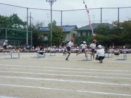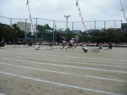 4,5,6年生は体育学習で行うハードル走を障害走にしています。