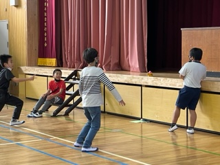 教室や体育館などを使い、みんなで考えた遊びをします。