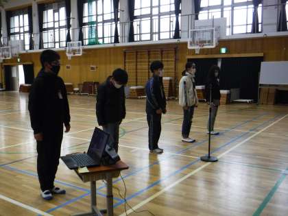 今日は見守り隊感謝式がありました。1年間,雨の日も雪の日も,どんな時でも見守ってくださる地域の見守り隊の方に,6年生は学校を代表して数人がお礼の言葉を伝えました。他の人たちもクラスでその姿を見守りました。