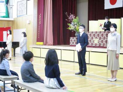 4月8日(金)春の草花が咲き誇る中,入学式を行いました。子どもたちはきっと,大きな希望と,ちょっぴりの不安をもって入学式を迎えたのではないでしょうか。こちらは入学式の写真です。
