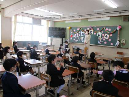 教室に入って担任の先生と