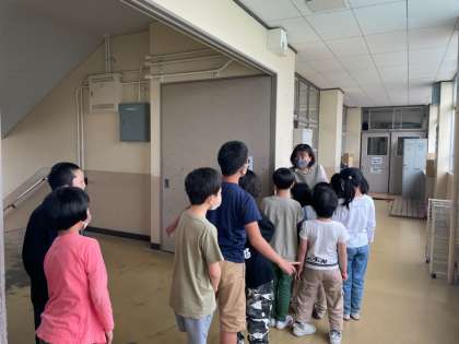 学校探検に行きました。みんなよく知った桂東小学校の校舎ですが,交流クラスや学年が上がり,初めて使う特別教室を探しに行きました。