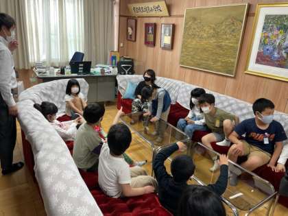 なんと,校長室を通りがかったとき,ちょうど校長先生と出会い,校長室にお邪魔させてもらいました。ふかふかのイスに大興奮する子や歴代校長先生の写真をまじまじと見る子など,校長室を満喫しました。