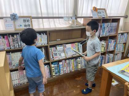 今日の生活科の学習は,2年生のお兄さんお姉さんが学校探検に連れて行ってくれました。優しい言葉で案内してくれる2年生と楽しくおしゃべりしたり質問したりしながら,たくさんの教室を見て回ることができました。初めて入る教室もたくさんあって,大興奮の子どもたちでした。