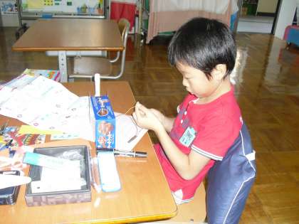 理科の授業で <豆電球であかりをつけよう>をしました。